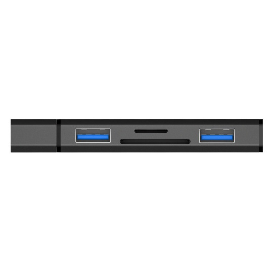 Praktičný USB-A 3.0 hub so čítačkou pamäťových kariet COMPACT umožňuje prenášať obsah medzi vašimi pamäťovými kartami a počítačom a umožní pripojenie až dvoch periférií (klávesnica, myš, fashdisk a pod.). Používa (zpätné kompatibilné) vysokorýchlostné rozhranie USB 3.0, vďaka čomu je zabezpečený bezproblémový a bleskový prenos dát medzi zariadeniami.