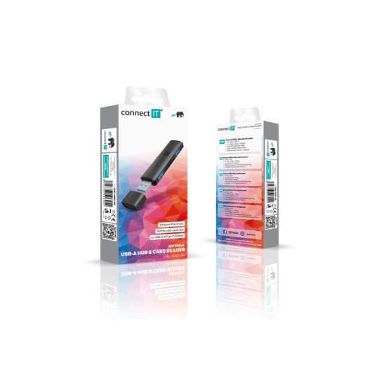 CONNECT IT Hub Compact 4v1, 2xUSB 3.0, 1xSD, 1xMicroSD, externí, černá