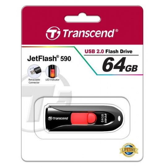TRANSCEND Flash disk 64GB JetFlash®590K, USB 2.0 (R:16/W:6 MB/s) čierna