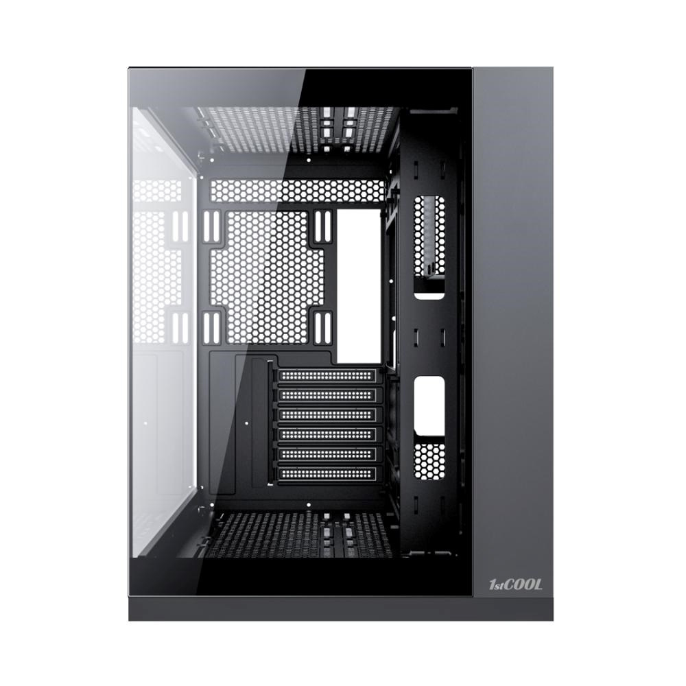 Navzdory kompaktným rozmerom ponúka priestor až pre 400mm dlhé grafické karty, 176mm vysoké chladiče a vodné chladenie až do veľkosti 360 mm. Vo vnútri nájdeš bohaté možnosti osadenia ventilátorov (až 9 kusov 120/140 mm), vyberať môžeš z niekoľkých variantov 1stCOOL ventilátorov vrátane aRGB riešenia, prípadne doplniť aj aRGB držiak grafickej karty.