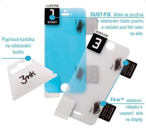 - Súprava obsahuje: FlexibleGlass, kartičku na rozlepenie bublín, polohovacie samolepky Fit-In™ a samolepky Dust-Fix™, čistiaci a suchý handriček.