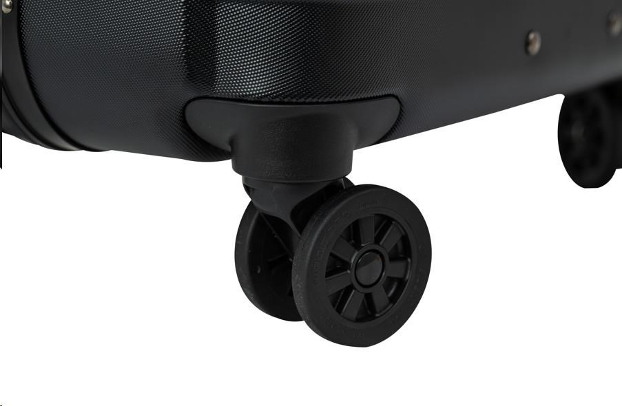 Snadné tlačení, tahání a otáčení – čtyři tichá dvojitá otočná kolečka minimalizují hluk a tlumí nárazy, což zajišťuje vynikající uživatelský zážitek s 360stupňovou manévrovatelností. Dvě rukojeti na přední straně pomáhají uživatelům zvedat zavazadlo oběma rukama a zabraňují bolesti zad/pasu. Teleskopická rukojeť kufru s PU kůží na horní straně, která zabraňuje kyselinám způsobeným potem, deštěm a vodou.