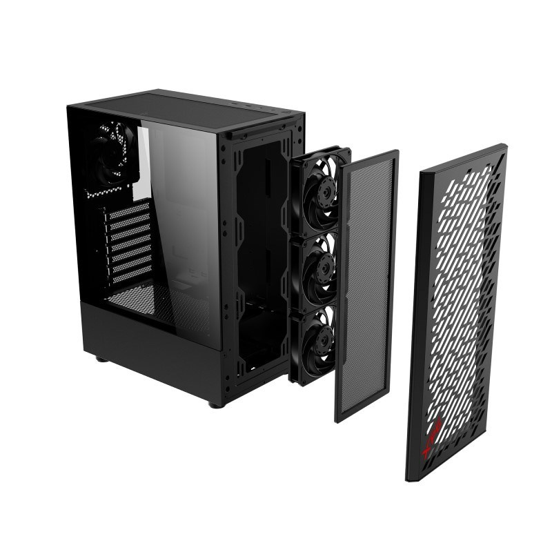 XPG VALOR AIR je kompaktný mid-tower ATX šasi s dizajnom predného panelu Streamline-Carving a bočným panelom z 3mm tvrdeného skla. XPG VALOR AIR je dostupný v čiernej a bielej farbe a dodáva sa so 4 predinštalovanými 120mm ventilátormi po vybalení. Vnútorné usporiadanie je mechanicky navrhnuté tak, aby zabezpečilo kompatibilitu s väčšinou bežných súčastí a má maximálnu flexibilitu pre podporu. XPG VALOR AIR je vybavený grafickými kartami dĺžky až 305 mm a vzduchovými chladičmi CPU s výškou až 166 mm a ponúka viac než väčšina šasi kompaktných rozmerov.