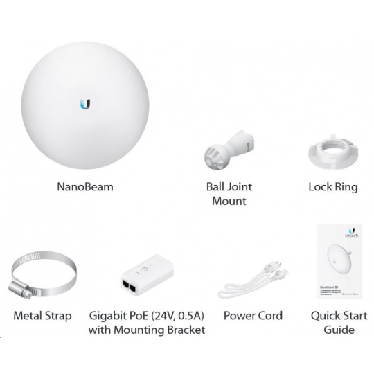 obsah balenia: - Zariadenie - Gigabitový napájací adaptér PoE 24V/0.5A - Napájací kábel - Napínacia páska - Plastový spoj + plastový zámok