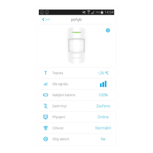 Detekčné zóny a kvalitu pripojenia je možné na diaľku otestovať prostredníctvom mobilnej aplikácie.