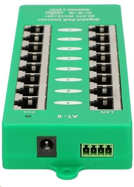 POE injektor aktivní - 8x 1Gb/s, stíněný, svorkovnice, 802.3af/at