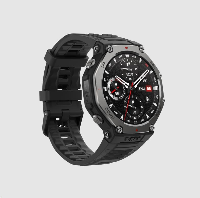 Vďaka ráme vojenskej kvality z nerezovej ocele sú hodinky Amazfit T-Rex 3 pripravené na akékoľvek výzvy, ktorú si zvolíte, a sú odolné voči extrémnym teplotám, vlhkosti, nárazom a ďalším vplyvom.