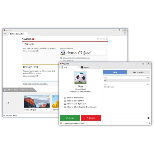 AnyDesk pre Mac alebo MacBook ponúka malého klienta s veľkosťou len 9 MB a širokú škálu funkcií - od jednoduchého vzdialeného prístupu až po pokročilé funkcie správy pre profesionálov.