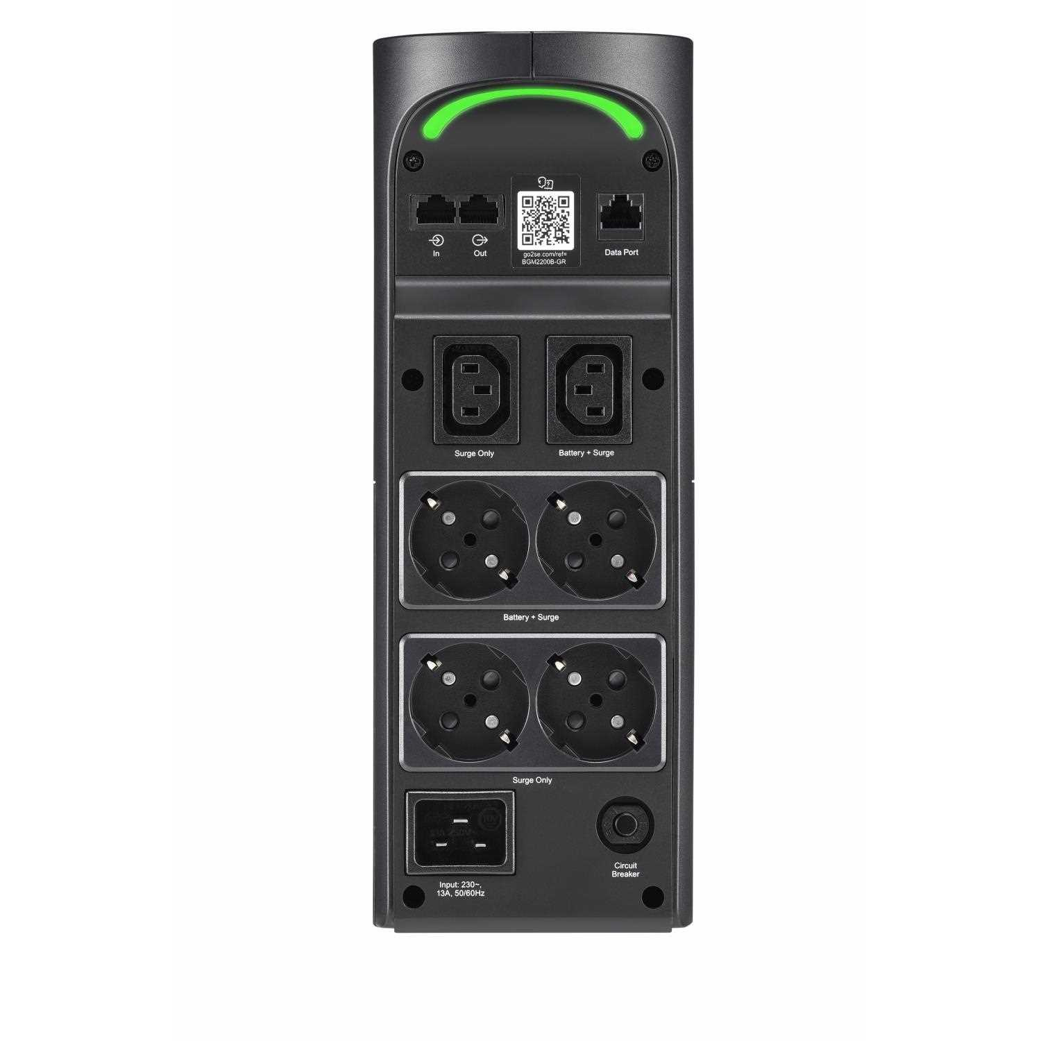 Vežová UPS 2200VA/1320W má celkovo 6 zásuviek, z čoho 3 sú záložné batérie a prepäťová ochrana a 3 sú iba prepäťovou ochranou. Má nárazovú energiu 1080 jouleov. Je vybavená automatickou reguláciou napätia, ktorá koriguje poklesy a rázy napätia na správnu úroveň. Dodáva sa s PowerChute Serial Shutdown, ľahko použiteľným softvérom pre bezpečné vypnutie systému s funkciami správy napájania a energie. Táto UPS má 3-ročnú záruku a politiku ochrany pripojeného zariadenia vo výške 150 000 USD. Má 2 USB porty (Typ A + C) pre chytré nabíjanie osobných zariadení.