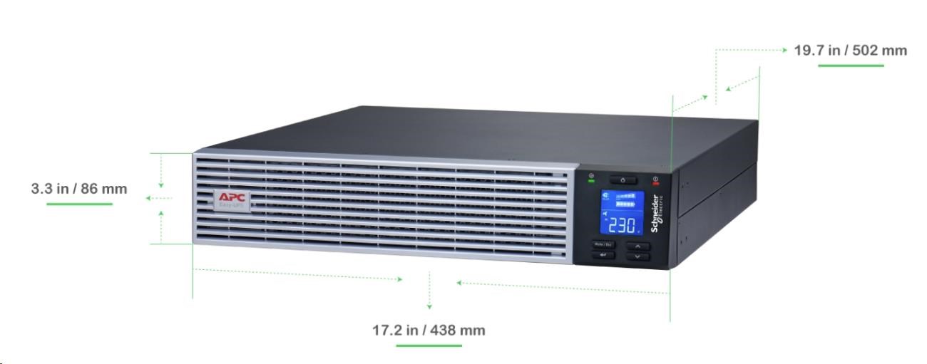APC Easy UPS On-Line, 2000VA/1800W Li-ion Rack/Tower 2U, 230V, 6 IEC C13 outlets, Intelligent Card Slot, W/ rail kit