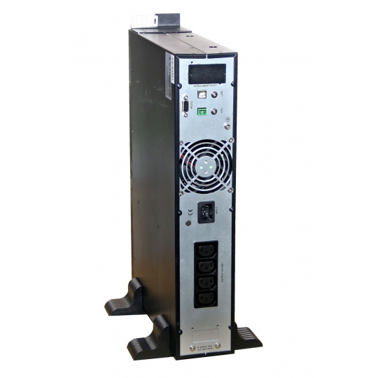 Online záložný zdroj EA901PRT so sínusovým výstupom. Rozmerovo navrhnutý pre serverové aplikácie (montáž do 19" racku). Súčasťou balenia sú plastové podstavce na vertikálne umiestnenie. 3 ovládacie tlačidlá a informačný displej na prednom paneli.