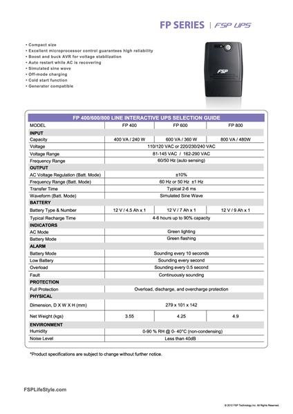 Fortron UPS FSP FP 600, 600 VA, interaktívna linka