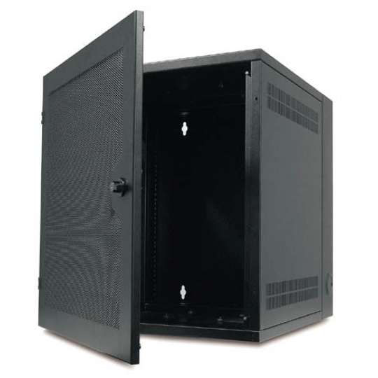 IT skrine navrhnuté pre špecifické prostredia a aplikácie, určené na montáž na stenu s perforovanými dverami.