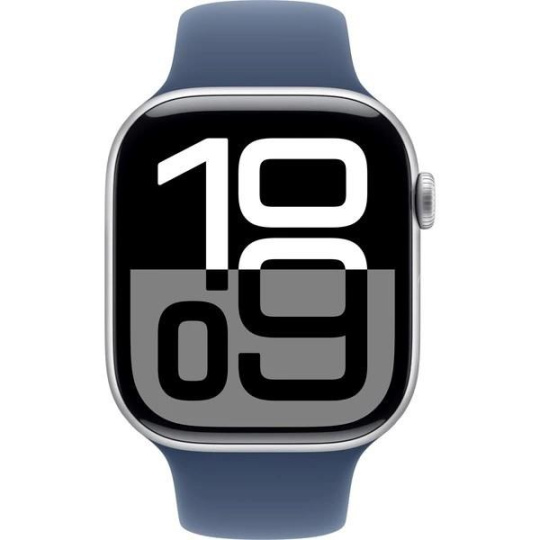 Apple Watch Series 10 GPS + Cellular 46mm Silver Aluminium Case with Denim Sport Band - M/L