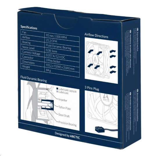 Pri nízkych otáčkach ventilátora je kľúčová hlučnosť motora. Motor vyvinutý v Nemecku s novou kombináciou zliatiny a maziva znižuje trenie a hlučnosť.