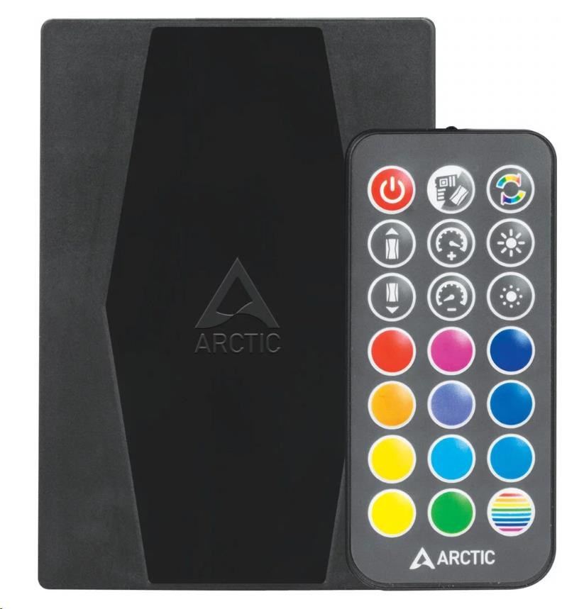 Vlastný radič A-RGB ARCTIC vám umožní vychutnať si vzrušujúce osvetlenie RGB, aj keď vaša základná doska nemá konektor A-RGB. Ovládač možno voľne umiestniť do puzdra a pomocou priloženého diaľkového ovládača