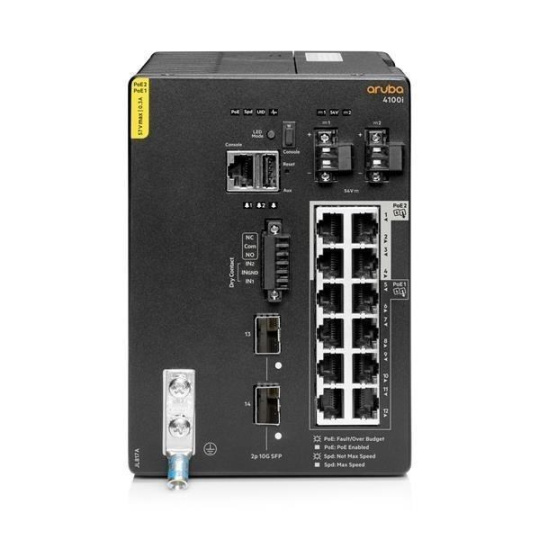 Aruba 4100i 12-port 1GbE (8-port Class 4 POE and 4-port Class 6 POE) 2-port SFP+ DIN Mount Switch (JL817A)