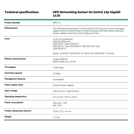 HPE Networking Instant On Switch 16p Gigabit 1430 (R8R47A)