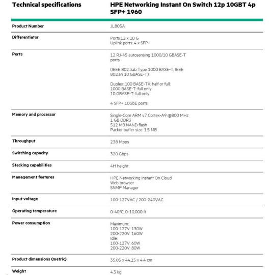 Device Management: Aruba Instant On Cloud; Web browser; SNMP Manager