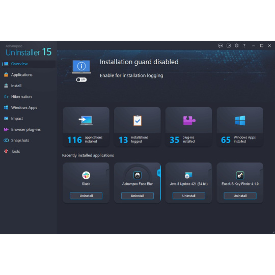 Nový Background Installation Guard v Ashampoo UnInstaller 15 vykonáva analýzu inštalácie v reálnom čase, ktorá je až 10x rýchlejšia ako predtým. Presne zisťuje začiatok a koniec inštalácie a lepšie podporuje vnorené alebo zriedkavé typy inštalácií. Či už skúšate nové programy alebo aktualizujete svoj obľúbený softvér, nášmu strážcovi nič neunikne, či už ide o menšie alebo väčšie úpravy systému. Zažite lepší výkon, presnosť a kompatibilitu!