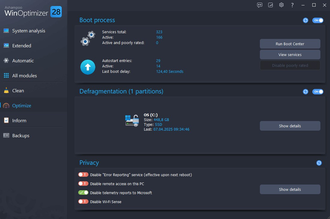 - Individuálne prispôsobená optimalizácia systému Windows pomocou nástroja