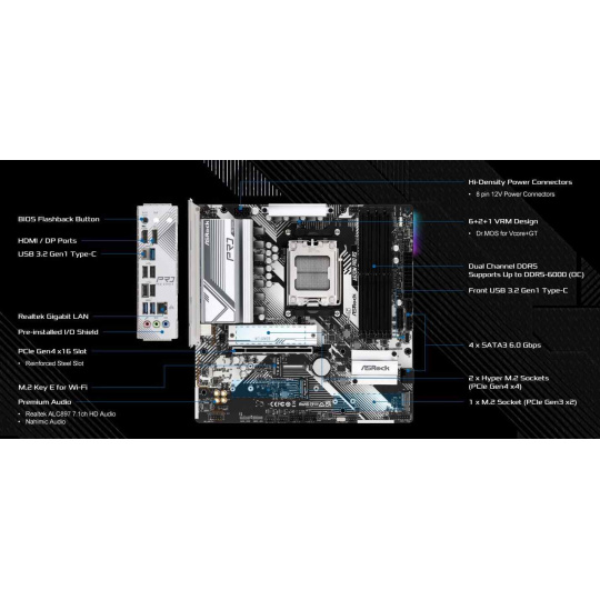 - Supports AMD Socket AM5 Ryzen™ 9000, 8000 and 7000 Series Processors