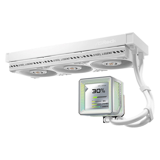 ASROCK Vodní chladič Steel Legend 360 LCD, 3x120mm, LGA1851, AM5, bílá