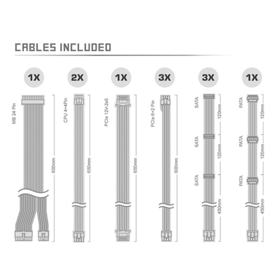 | ATX 20+4pin Konektor | 1x / 1x (600 mm) |
