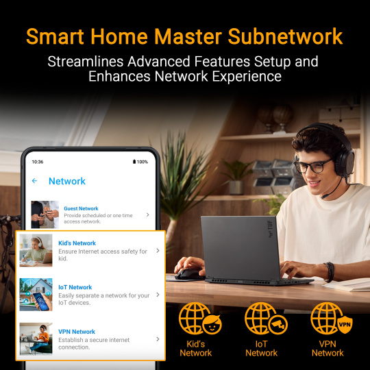 TUF Gaming BE9400 je odolný, vysoko výkonný WiFi 7 router navrhnutý pre stabilné hranie s nízkou latenciou. S rýchlosťami až 9 400 Mb/s, podporou 320MHz kanálov a technológiou Multi-Link Operation poskytuje rýchle a spoľahlivé pripojenie pre všetky vaše zariadenia. Ponúka štyri 2,5G LAN porty, vrátane špeciálneho herného portu, ktoré zabezpečujú rýchle a stabilné káblové pripojenie na hranie bez zpoždenia. Tento router, vytvorený tak, aby vás podporil v každej bitke, je pripravený vždy, keď ste pripravení vy.