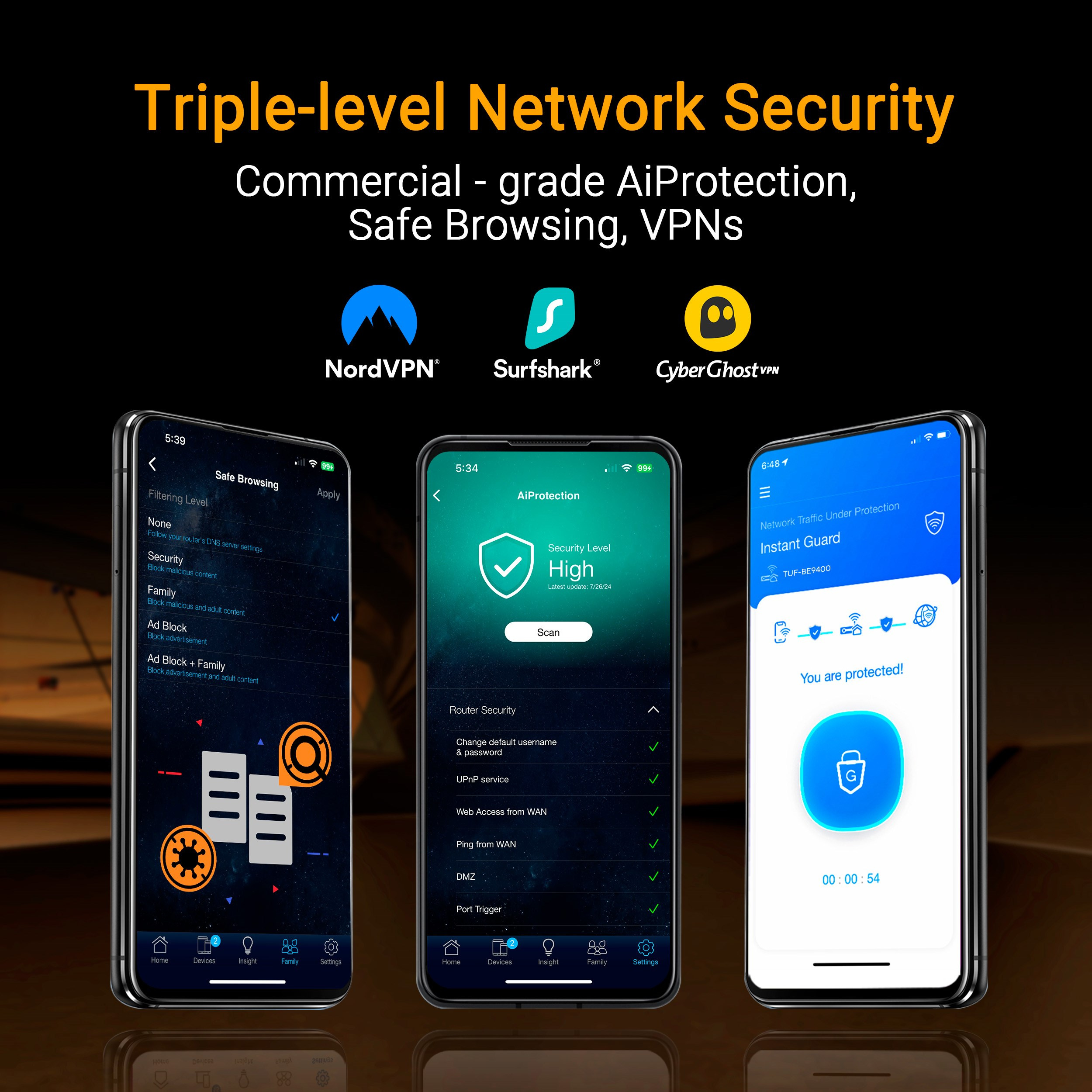 ASUS Herní Router TUF-BE9400 3-pásmový WiFi7 Router, 1x WAN, 3x LAN, AiMesh