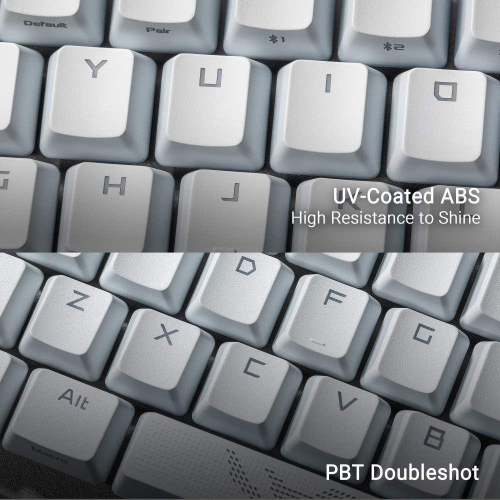 - Vylepšené možnosti písania: Predom namazané stabilizátory klávesnice produkujú menej trenia pre plynulejšie stlačenie kláves a stabilitu pre dlhšie klávesy; odolné krytky kláves ROG PBT doubleshot alebo krytky kláves ABS s UV vrstvou poskytujú prvotriedny pocit a odolnosť proti lesku