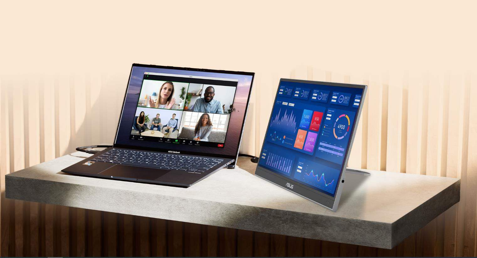 Prenosný monitor ASUS ZenScreen OLED MQ16AHE – 16" (15,6") FHD (1920 x 1080), OLED, 100% DCI-P3, Doba odozvy 1 ms, HDR-10, USB Type-C, Mini HDMI, Senzor priblíženia, 360° stojan, Bez blikania, Low Blue Light
