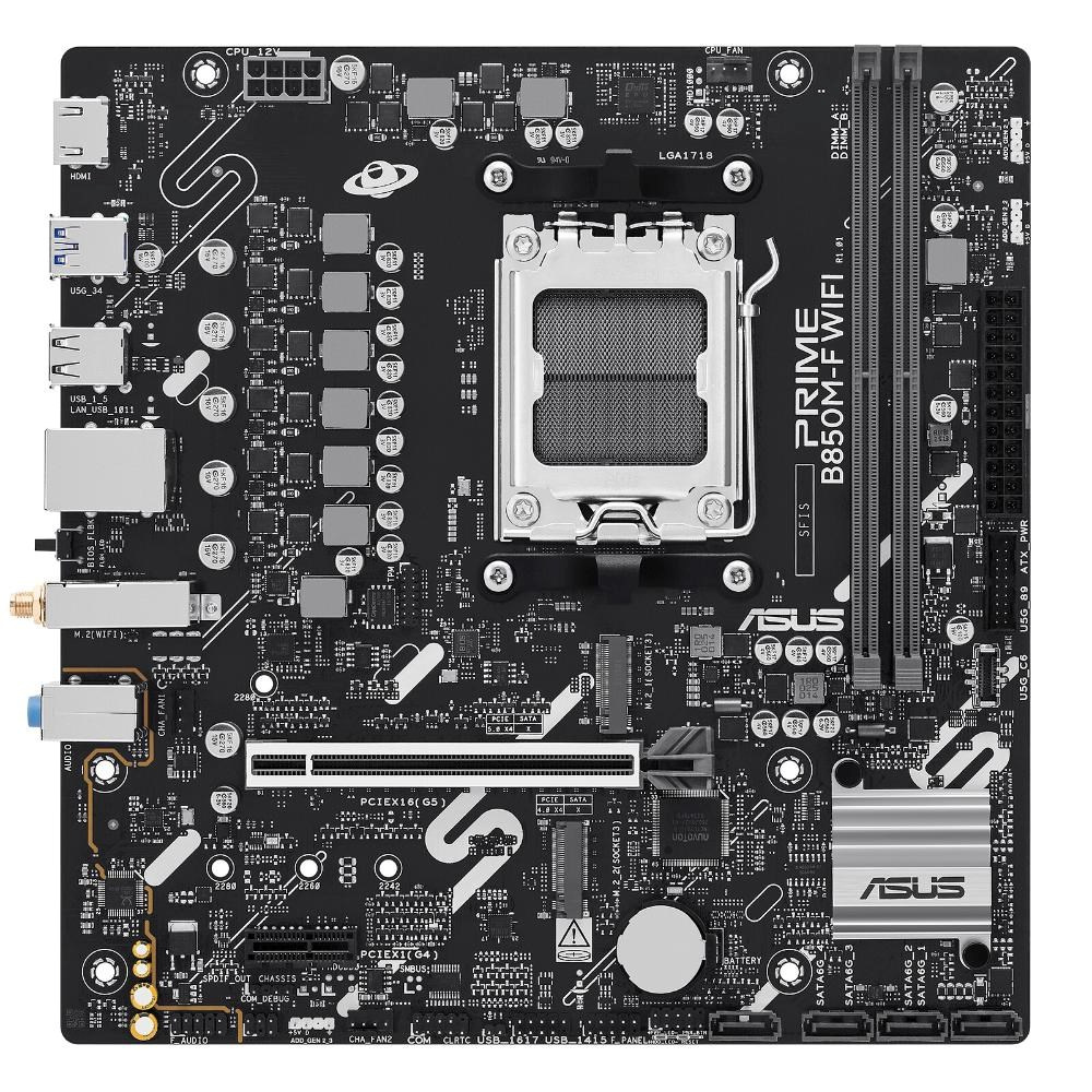 Na základe čipovej súpravy AMD B850 je základná doska ASUS PRIME B850M-F WIFI navrhnutá tak, aby pojala procesory AMD Ryzen 7000/8000/9000 na pätici AM5. Je ideálna na zostavenie hernej alebo multimediálnej konfigurácie. Cena je dostupnejšia ako u čipovej súpravy X870, pričom podporuje DDR5, grafické karty PCI-Express 5.0 a SSD M.2 PCIe 5.0.