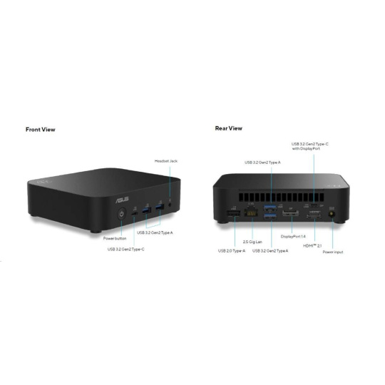 ASUS NUC 14 Essential RNUC14MNK2500002/N250 Procesor/DDR5-4800 SODIMM/USB-A,C/M.2 2280/Wi-Fi/LAN/EU Napájecí kabel