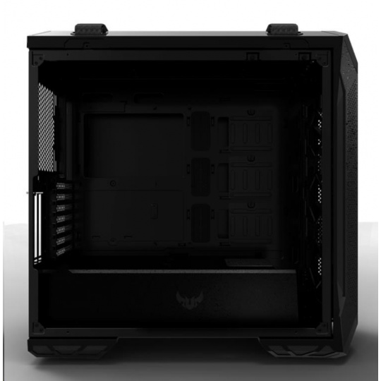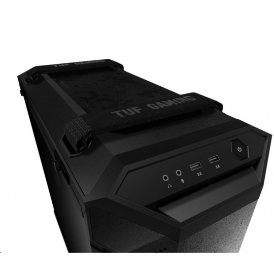 - Navrhnutý tak, aby si ho všimli: Kovový predný panel s vlastným vzorom TUF Gaming a 4 mm hrubý bočný panel z dymového temperovaného skla, ktorý ukazuje vnútorné prvky vašej zostavy.
