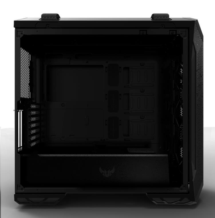 - Navrhnutý tak, aby si ho všimli: Kovový predný panel s vlastným vzorom TUF Gaming a 4 mm hrubý bočný panel z dymového temperovaného skla, ktorý ukazuje vnútorné prvky vašej zostavy.