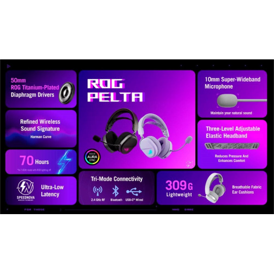 ASUS sluchátka ROG Pelta, Bezdrátové BT a RF 2.4GHz, ARGB, bílá