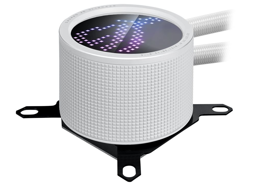 ROG Ryuo III 240 biela verzia všetko-v-1 chladič na CPU s Asetek 8. generáciou čerpadla, Anime Matrix™ LED Displejom a ROG ARGB chladením ventilátory
