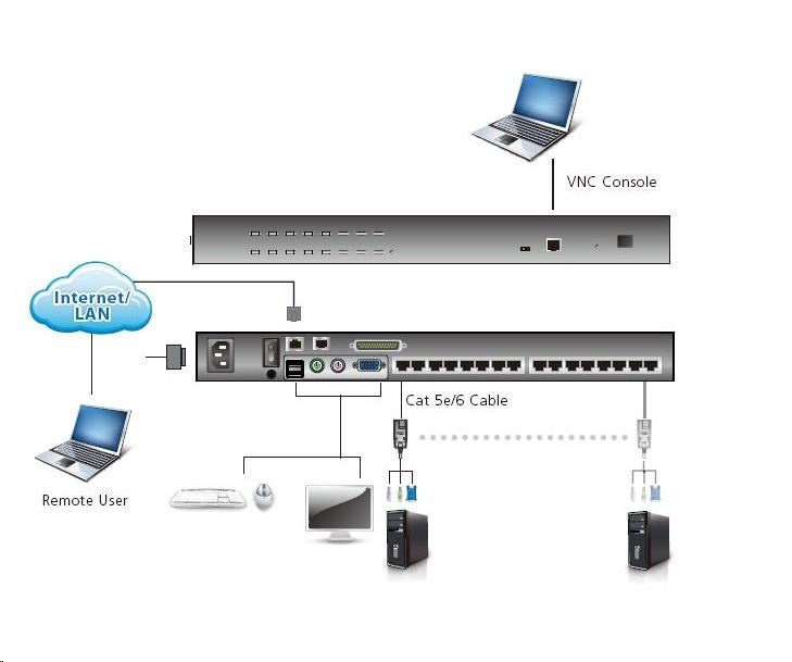 z jednej konzoly možno ovládať až 16 počítačov cez LAN/WAN alebo internet