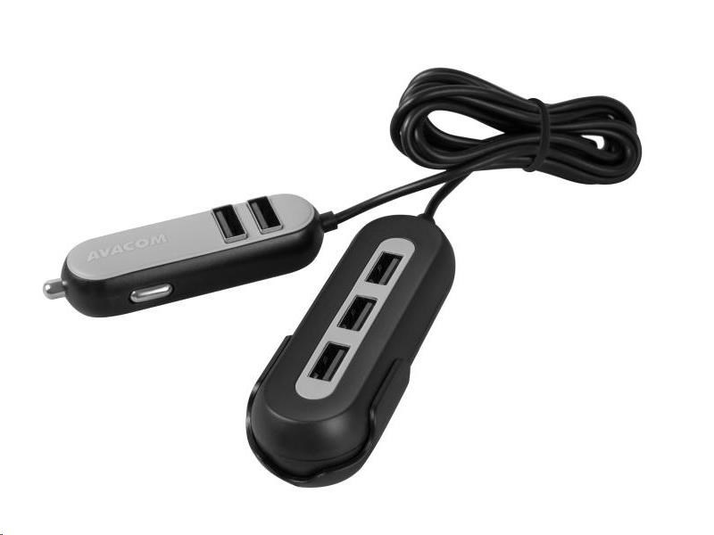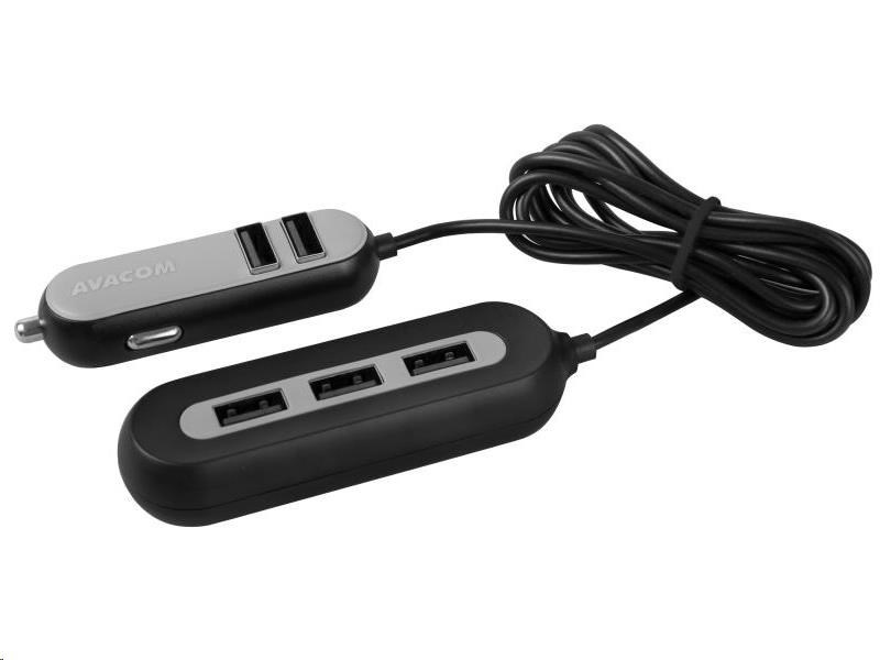 AVACOM CarHUB nabíja 5 zariadení súčasne. Má dve časti, ktoré sú spojené 1,5 m dlhým káblom. Prvú časť s dvoma výstupmi USB možno zapojiť do zásuvky zapaľovača automobilu. Ďalšie tri výstupy USB možno pomocou praktického klipu pripevniť za zadné sedadlo, čo umožňuje nabíjanie pre všetkých cestujúcich vo vozidle. Vysoký výstupný prúd nabíjačky (2,4 A na port a 10,8 A celkovo) a výkon 54 W zaručujú bezproblémové nabíjanie náročných zariadení - smartfónov, tabletov alebo navigácií.