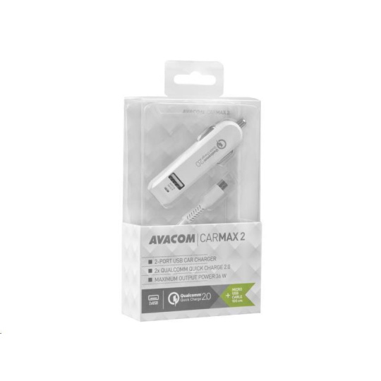 AVACOM CarMAX 2 nabíječka do auta 2x Qualcomm Quick Charge 2.0, bílá barva (micro USB kabel)