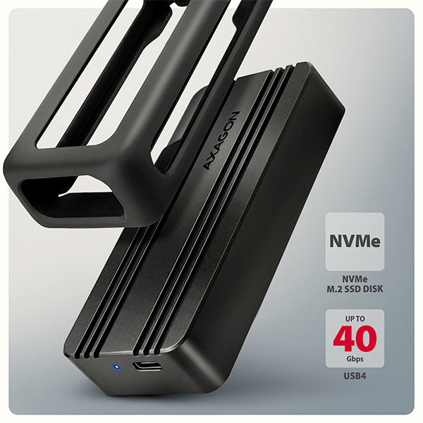 AXAGON EEM2-40G, USB-C 40Gbps externý box pre M.2 NVMe SSD, zosilnený hliník