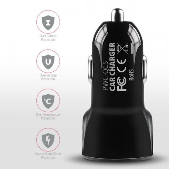 • QC - rýchlonabíjanie zariadení s podporou Qualcomm Quick Charge 2.0 a Quick Charge 3.0.