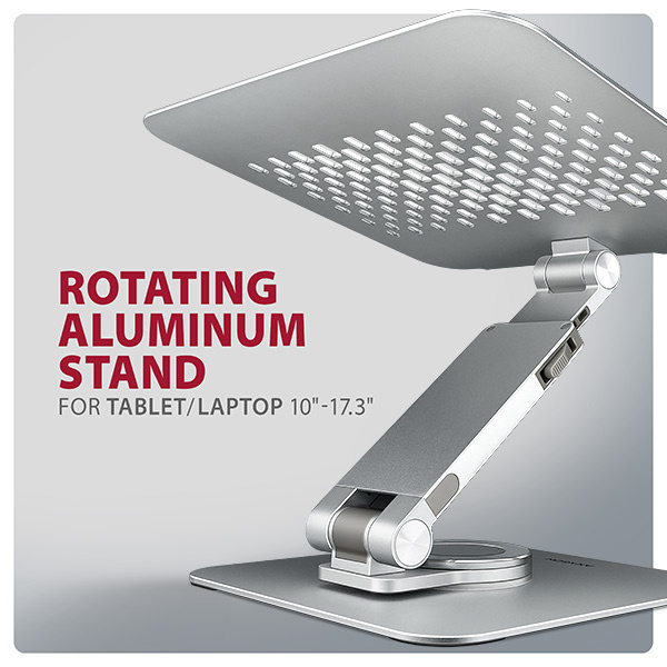 AXAGON STND-LR, hliníkový stojan pre notebooky 10„ - 17“ s nastaviteľnou výškou, uhlom a rotáciou o 360°