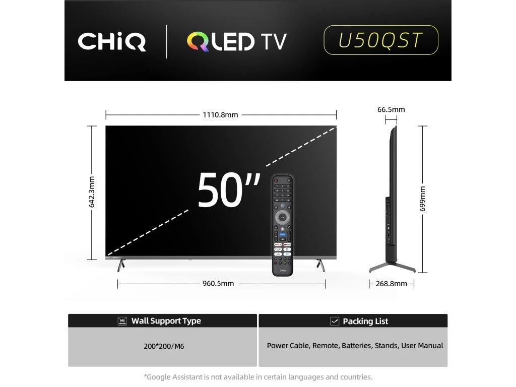 BAZAR - CHiQ U50QST TV 50", UHD, QLED, ultratenká, Google TV, DLG 120 Hz, Dolby Audio, Frameless, metalická - Poškozený