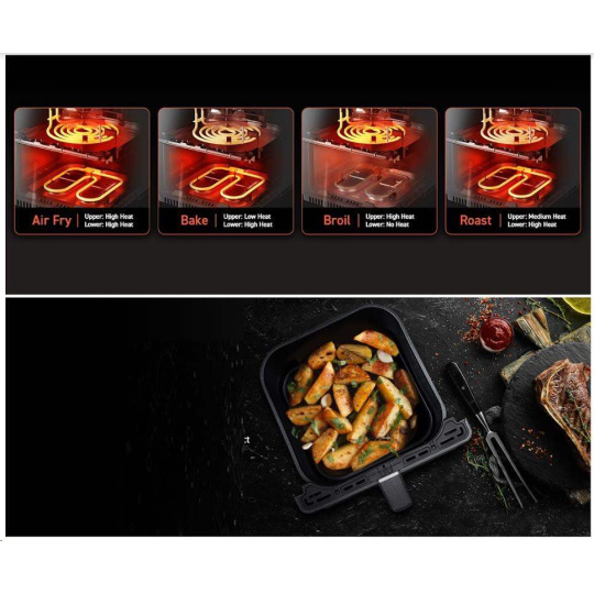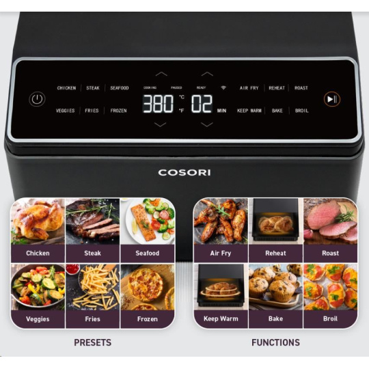 S horkovzdušnou fritovacou hlavu COSORI CAF-P583S SMART si môžete vychutnať vaše obľúbené vyprážané jedlá bez výčitiek, pretože na rozdiel od bežného vyprážania alebo fritovania je v tejto horkovzdušnej fritovacej hlave možné pripravovať jedlá s použitím veľmi malého množstva oleja alebo vôbec žiadneho. Patentovaná technológia THERMO IQ 360° HEAT CIRCULATION presne riadi teplotu inteligentným teplotným algoritmom a zabezpečuje rovnomerne uvarené jedlo bez nutnosti jeho pretrepávania alebo preklápania. Kombinácia cirkulujúceho horúceho vzduchu, dokonalé teploty varenia a chytrých programov zabezpečí, že hranolky budú vždy krásne chrumkavé a kuracie stehná šťavnaté. Programy si môžete rýchlo a pohodlne nastaviť aj cez smartphone alebo Amazon Alexa a Google Assistant. Keď budete mať hotovo, čistenie bude rovnako jednoduché vďaka neprilnavému košu, ktorý je možné umývať v umývačke riadu. Vďaka veľkej nádobe s objemom 6,4l navyše dokážete rýchlo uvariť aj pre väčšiu rodinu alebo skupinu hostí.