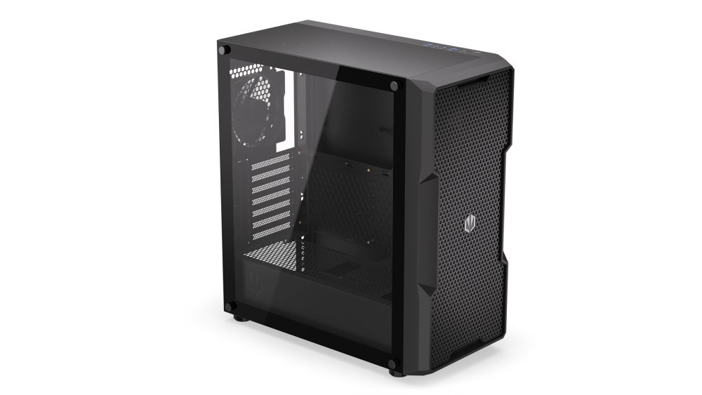Šasi formátu Middle Tower s priehľadnou bočnicou z tvrdeného skla ponúka dve 2,5" pozície pre SSD disky a dve 3,5" pozície pre pevné disky. Na vrchnej časti sa nachádza dva USB 3.0 porty, výstup na slúchadlá a vstup na mikrofón. Vybavené je štyrmi 120 mm ventilátormi, ktoré spolu s perforovaným čelným panelom zabezpečujú dostatočný prúdenie vzduchu. Vo skrini je dostatok priestoru pre chladič CPU do výšky až 162 mm a grafickú kartu s dĺžkou až 370 mm. Dodáva sa bez zdroja. Súčasťou je aj sada prachových filtrov.