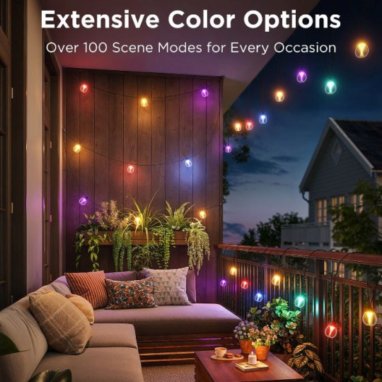 S viac ako 100 prednastavenými svetelnými scénami a neobmedzeným počtom nastavení farieb vám tieto svetlá umožnia vytvoriť dokonalú atmosféru pre každú príležitosť. Od jemných, romantických tónov až po živé a dynamické farebné kombinácie - všetko sa dá jednoducho ovládať prostredníctvom aplikácie a prispôsobiť podľa vášho vkusu. Vaše vonkajšie posedenie bude vďaka bohatej palete farieb vždy žiariť jedinečným štýlom a náladou.