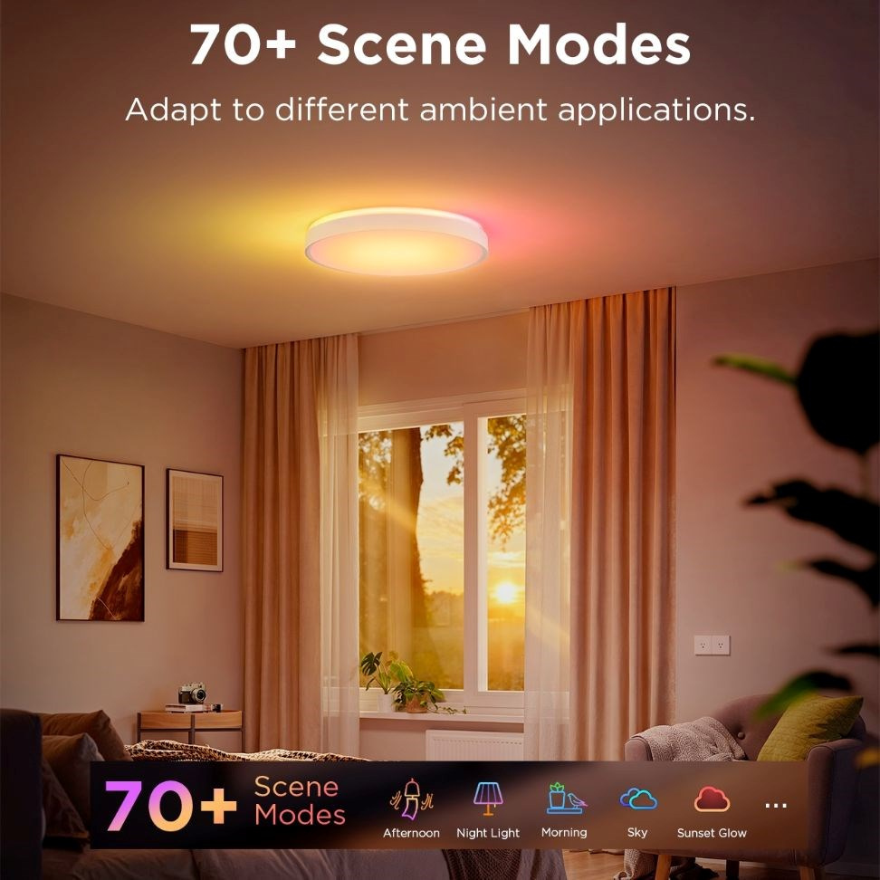 Objavte viac ako 70 inteligentných scén pre dokonalé osvetlenie vášho priestoru! Duálne stropné svietidlo Govee ponúka v aplikácii výkonný režim DIY, ktorý vám umožní vytvoriť si osvetlenie podľa vlastných predstáv. Ľahko si vytvoríte atmosféru, ktorá sa hodí na akúkoľvek príležitosť a v akomkoľvek štýle. Navyše vďaka funkcii Dreamview synchronizujte viacero svetiel Govee na rovnakú farbu, aby ste dosiahli skvelý efekt. Oživte svoj domov so zariadením Govee!