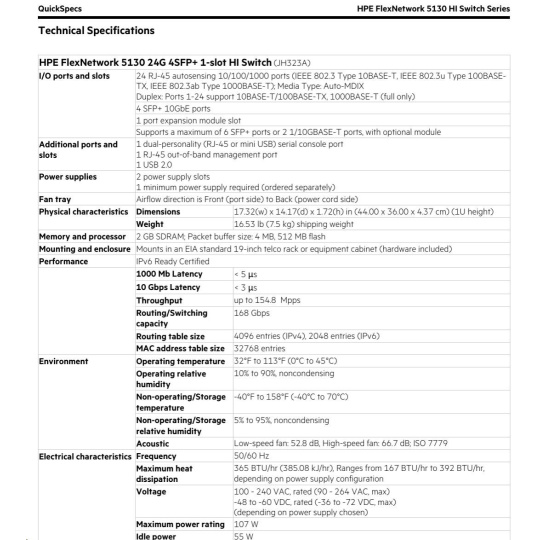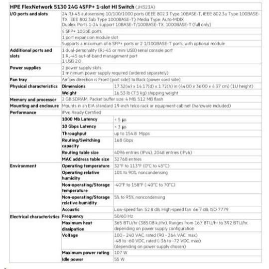 Software and support: HPE Networking SupportEnvironmental Specification